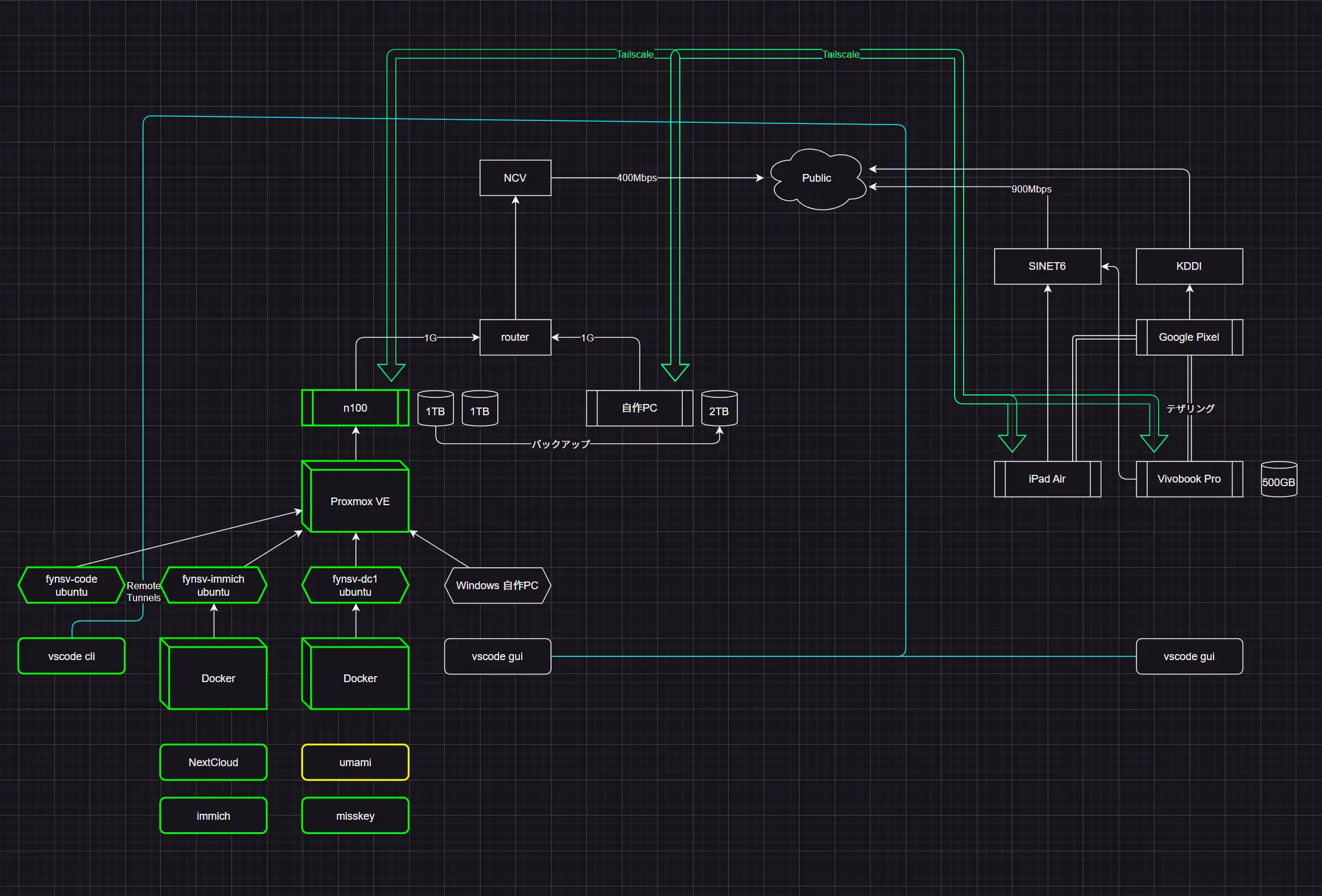 ラックサーバーを合わせた最終的な構成はこんな感じになりました。