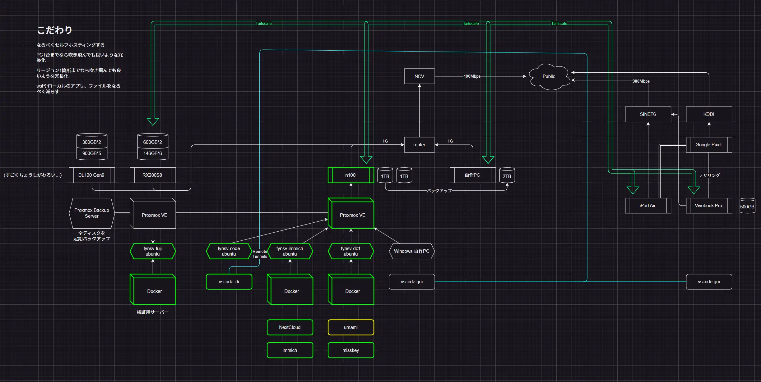 合わせて8TBぐらいのディスクアレイが動いていて、RAIDをいい感じに組んだのでデータがとても安全です。いいはなしですね。